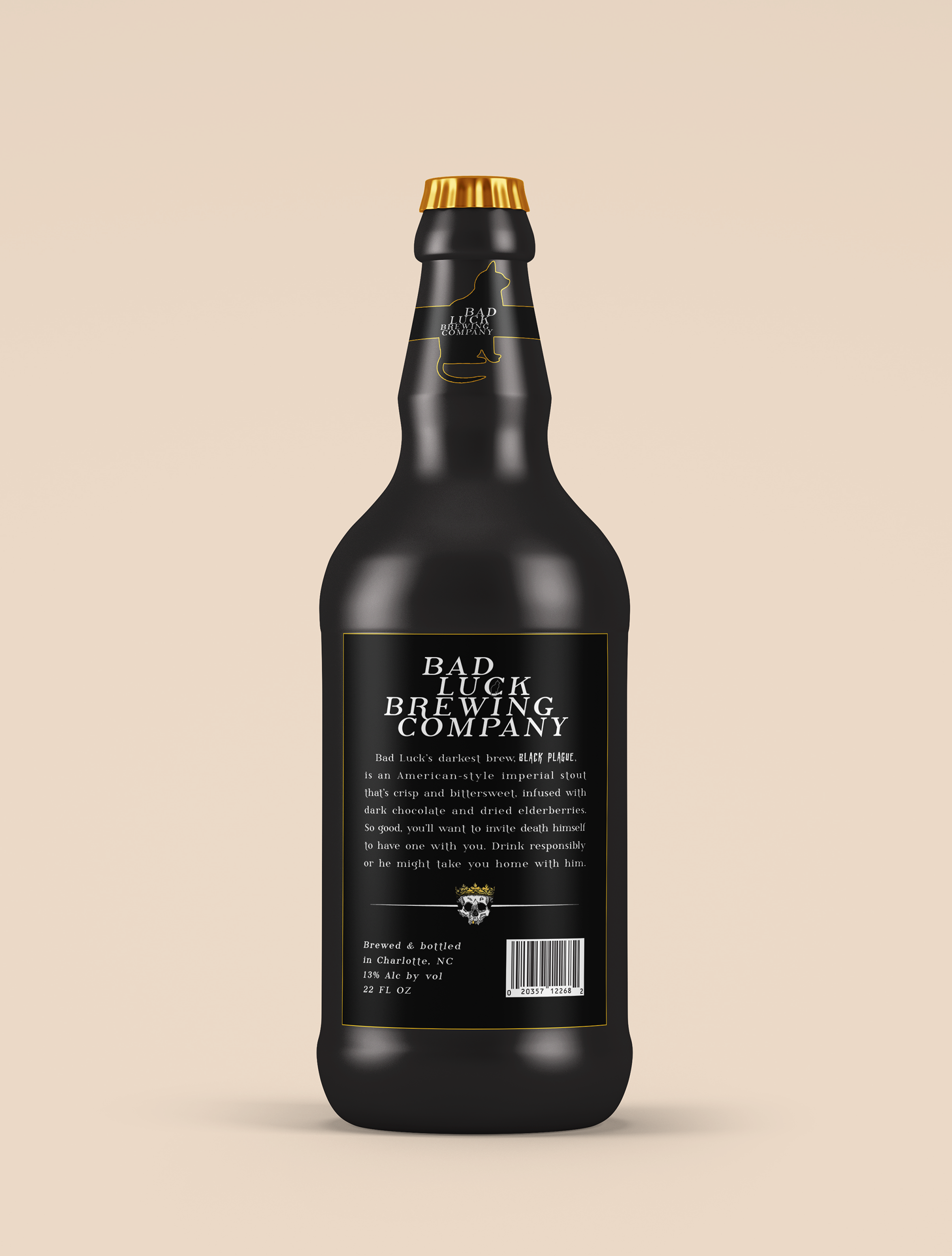 Black Plague Imperial Stout is a concept for a craft beer by the fictional Bad Luck Brewing Company. Stouts are very dark in color, lending them beautifully to grim, gimmicky theming.